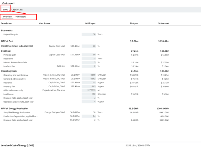 The Cost Report provides a summary of all costs related to a power plant, along with its overall economic performance over the project lifetime.