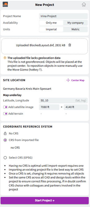 After completing all required fields, click “Start Project”