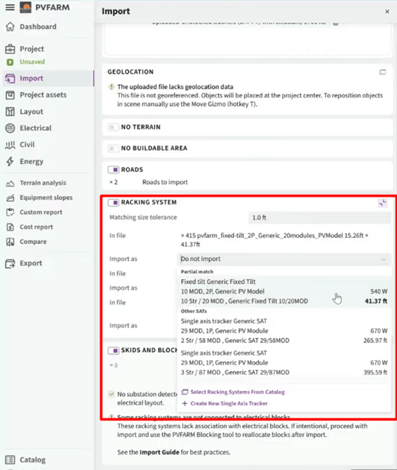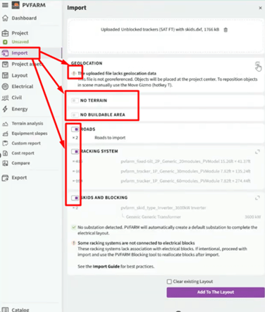 - Result in PVFARM after importing the 2D DXF file