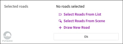 - It is possible to both generate new roads or select existing by using the equipment road radio buttons.