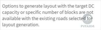 When generating a layout, an important thing to check is your "Roads and Geometry" section as seen below. If the toggle switch besides roads is not checked then PVFARM will not place roads on the layout and will not leave any gaps in the PV array.