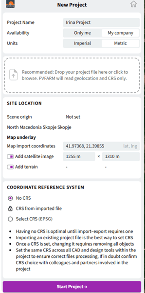 After completing all required fields, click “Start Project”