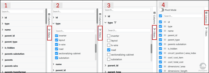 - Example: For trackers, you might choose Type, Module Count, DC Power, Strings Count, and Module Power.